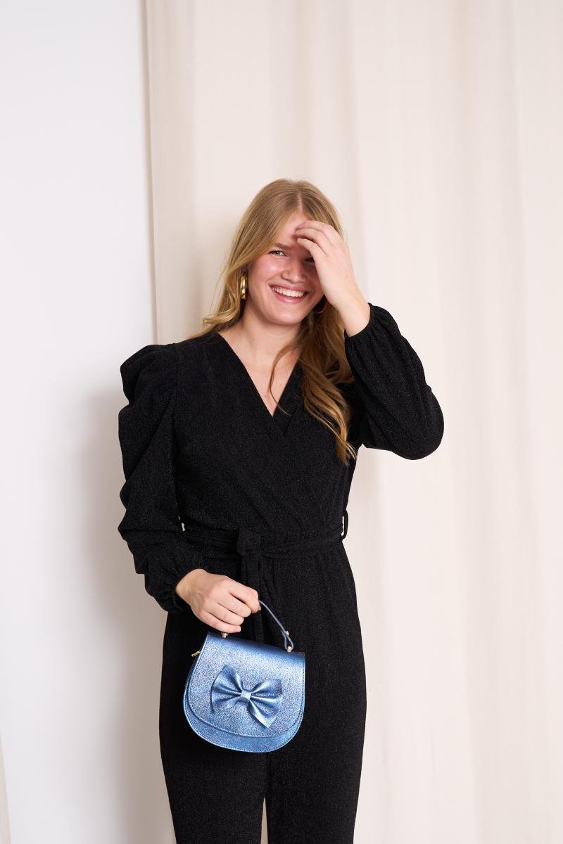 Bijzonderheden: De tas sluit onder de flap d.m.v. een ritssluiting, de flap sluit met een drukker. Bovenop de tas zit een korthengsel waaraan de tas vast gehouden kan worden. daarnaast wordt de tas geleverd met een lang leren hengsel dat verstelbaar en afneembaar is.