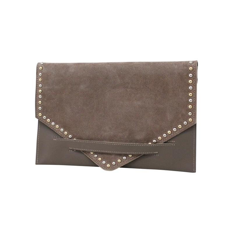 Tas wordt geleverd met een lederen schouderhengsel. Zo kan de tas in de hand (als clutch), maar ook als schoudertas gedragen worden.